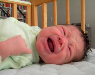 Hanna really doesn't like having a dirty or wet bottom and doesn't hesitate to let us know. She usually calms down after she has been changed. But in this case it took a little longer. When she is unhappy she sometimes grabs the hair on the back of her head with her right hand and holds onto it.